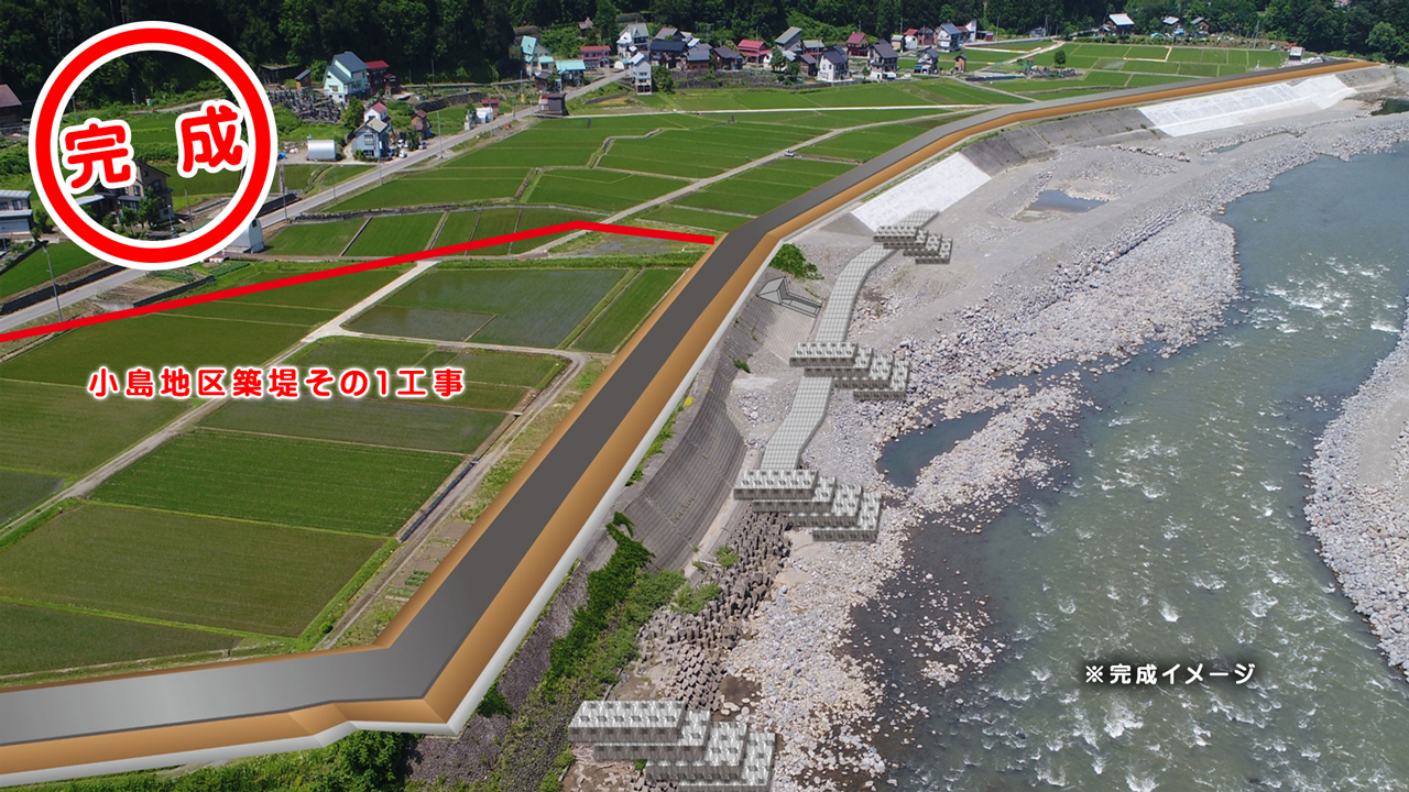 | 一級河川信濃川復緊事業(補正) 小島地区築堤その1工事 |