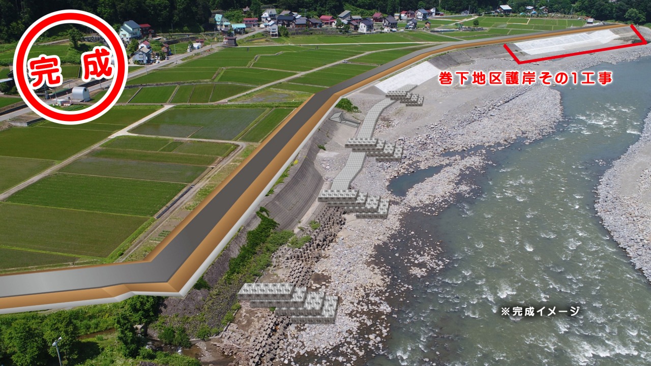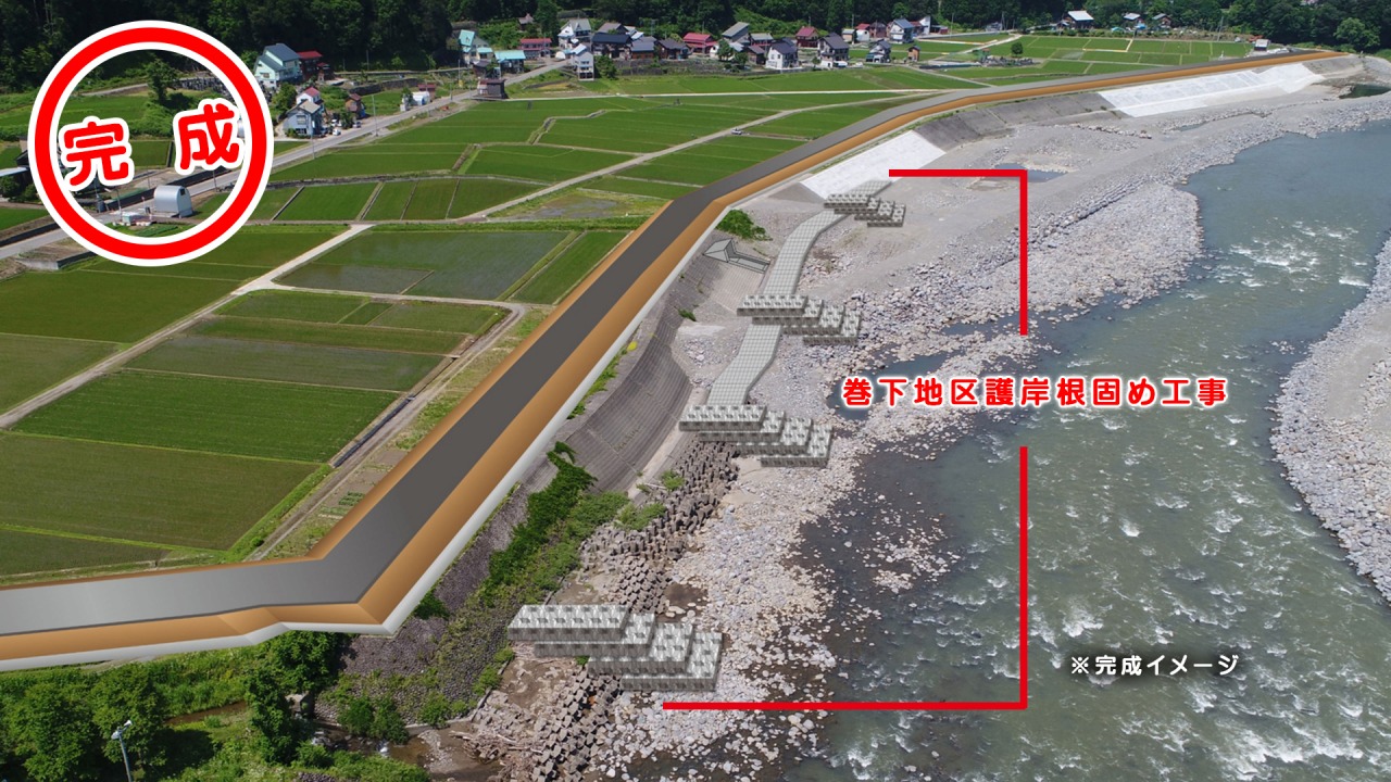 | 一級河川信濃川復緊事業(補正) 巻下地区護岸根固め工事 |